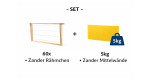 Sparpaket für Zander-Imker: 60 fertig gedrahtete Rähmchen mit rostfreiem Edelstahldraht und 5 kg Mittelwände aus 100% Bienenwachs.