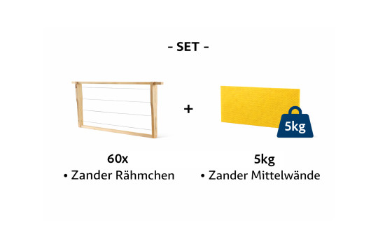 Mit diesem GÜNSTIGEN SET erhalten Sie ein ideal abgestimmtes Komplettpaket für Ihre Bienenstöcke. Statt Rähmchen selbst zu nageln und zu drahten, liefern wir Ihnen 60 gebrauchsfertige Zander-Rähmchen, die bereits mit Hoffmann-Seiten ausgestattet sind. Kombiniert wird dies mit 5 kg hochwertigen Mittelwänden im Zander-Maß (395 x 195 mm), hergestellt aus reinem Bienenwachs. Das Lindenholz der Rähmchen ist stabil und leicht, während der straff gespannte Edelstahldraht für langlebige Haltbarkeit sorgt.